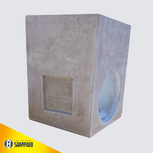 Proteção essencial para as conexões subterrâneas. Essa caixa de concreto de passagem garante segurança e fácil acesso para manutenção das redes de esgoto e drenagem.